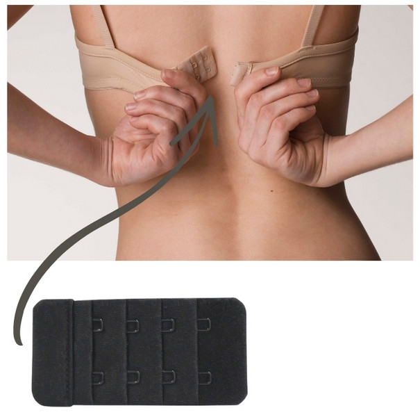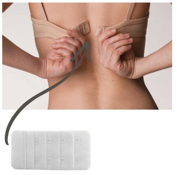 Przedłużka jest wykonana z miękkiego, elastycznego materiału, który nie uciska i nie podrażnia skóry. Prosty montaż sprawia, że w kilka sekund można zwiększyć długość zapięcia o kilka centymetrów, bez potrzeby kupowania nowego biustonosza.