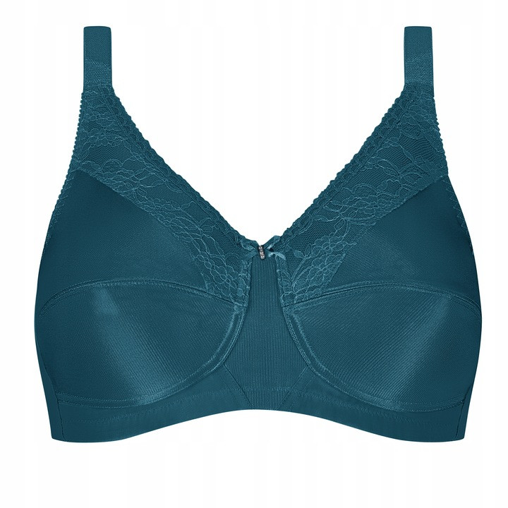 Nancy nie jest usztywniany i nie ma fiszbin, klasyczny biustonosz w nowym, sezonowym kolorze: ciemny turkus.
