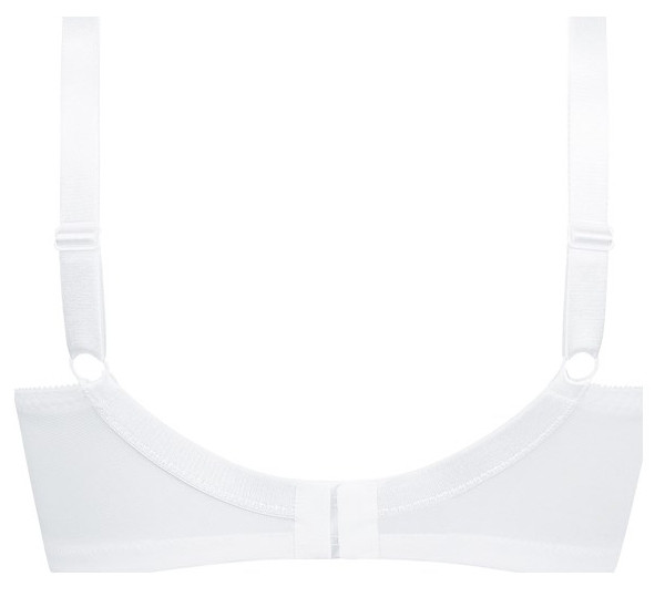 Nancy nie jest usztywniany i nie ma fiszbin, klasyczny biustonosz w białym kolorze.