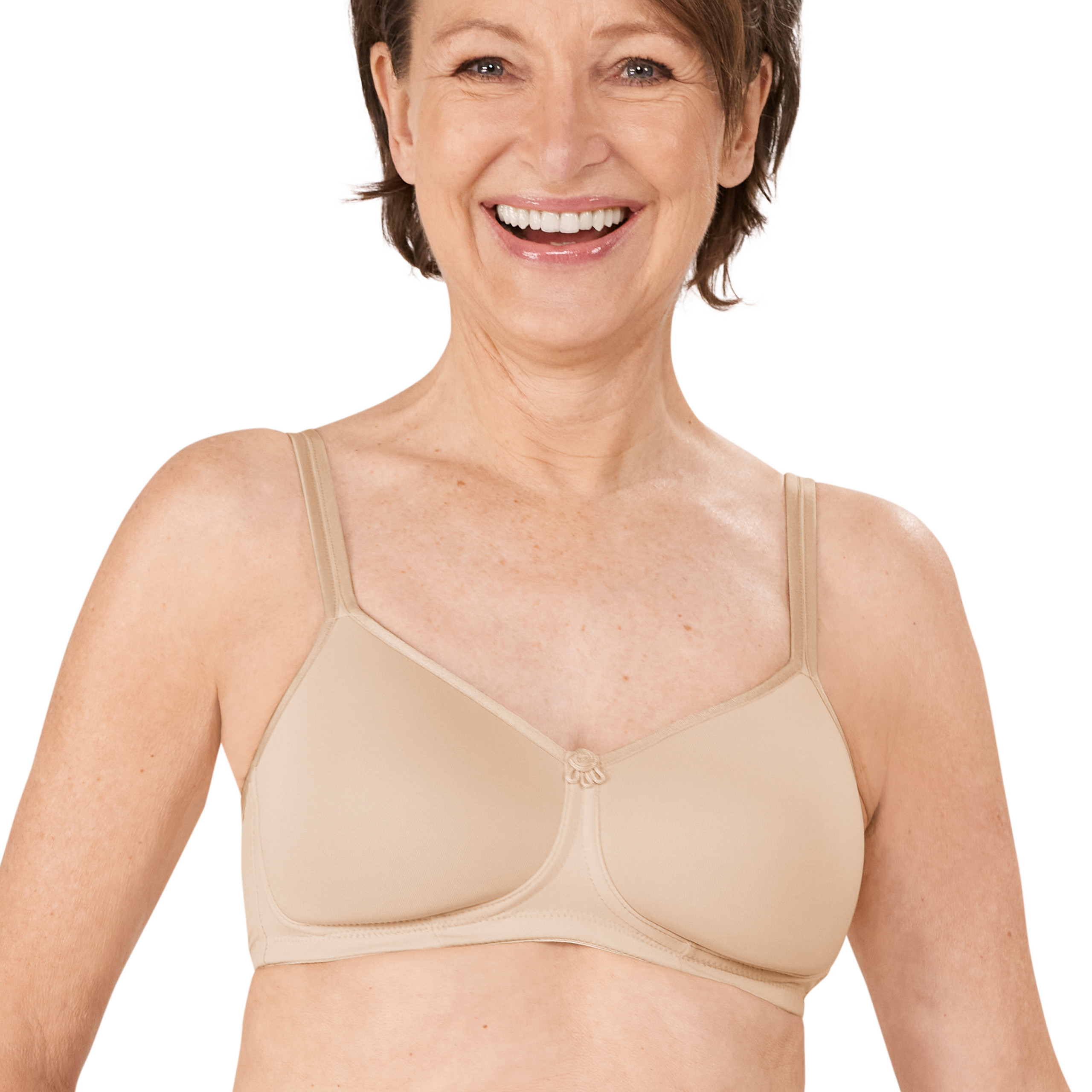 Biustonosz Mara w kolorze beżowym to doskonały biustonosz do noszenia na co dzień. Obustronne kieszonki bezpiecznie utrzymują na miejscu protezę lub nakładkę uzupełniającą.