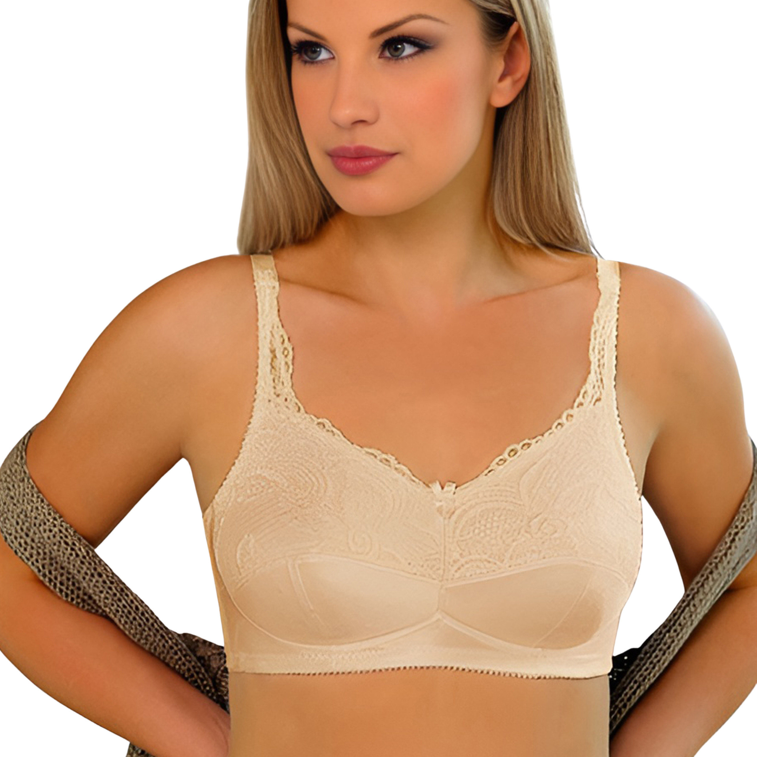 Biustonosz po mastektomii Amoena Camilla SBP beżowy – bez fiszbin, z kieszonkami na protezy piersi
