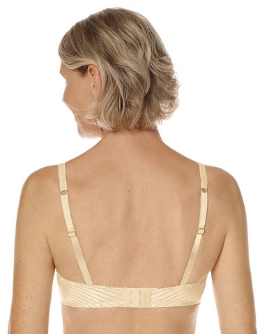 - Usztywniona konstrukcja bez fiszbin – gwarantuje nie tylko doskonałe podtrzymanie, ale również komfort przez cały dzień, co jest szczególnie ważne dla kobiet po mastektomii.