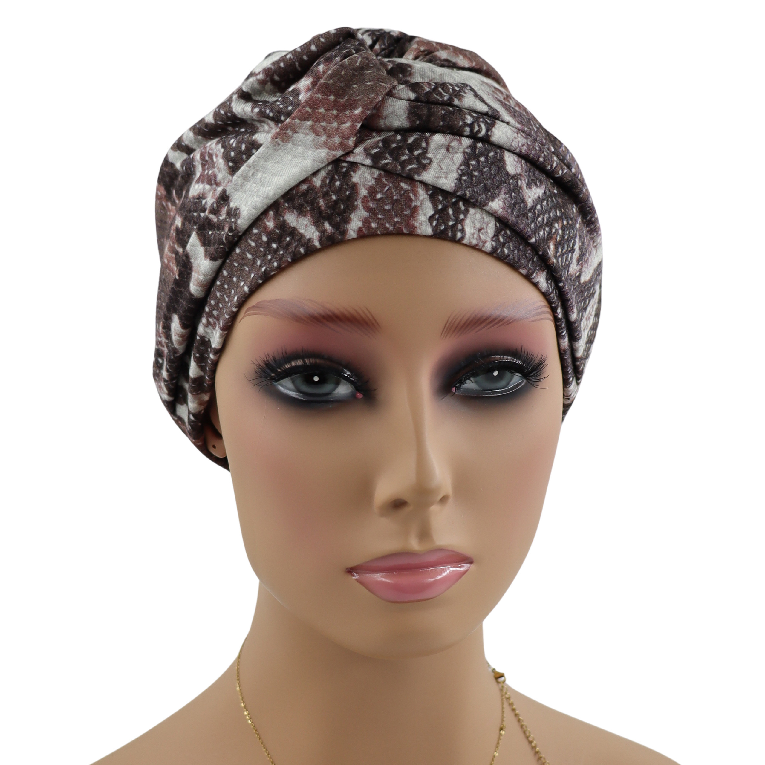 Przyjemny dla skóry turban uszyty z bambusowej wiskozy w różnych odcieniach i wzorach do wyboru. Jest to model gotowy do nałożenia, nie wymaga formowania na głowie ani zawiązywania. Rozmiar jest uniwersalny, dzięki czemu pasuje na różne obwody głowy.