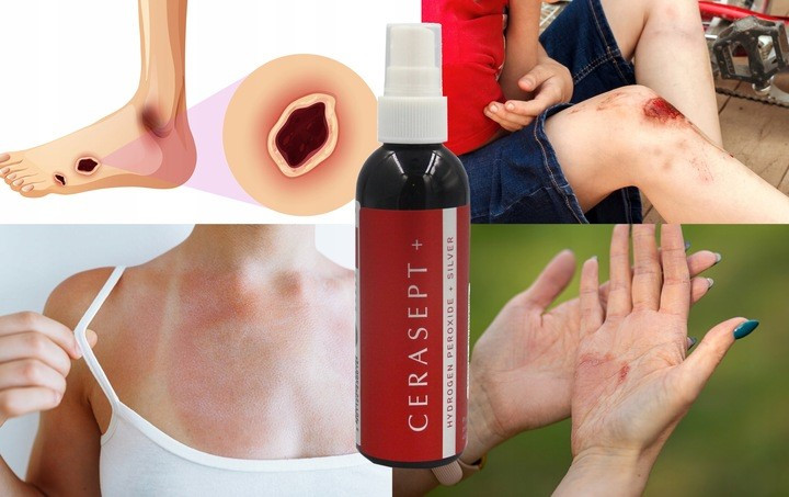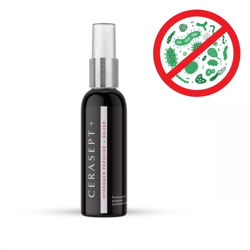 Cerasept + to innowacyjny płyn do skóry w jakiś sposób uszkodzonej. Płyn składa się z dwóch substancji: aktywnego tlenu i srebra, które połączone ze sobą dają znacznie lepszy efekt, niż stosowane osobno.