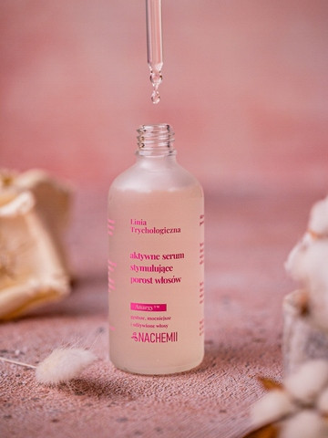 Serum stymulujące porost włosów Nachemii to innowacyjny produkt opracowany z myślą o osobach zmagających się z nadmiernym wypadaniem włosów, pragnących zwiększyć ich gęstość, a także tych, które potrzebują wzmocnienia i regeneracji pasm. Może być stosowane przez osoby po leczeniu onkologicznym oraz każdego, kto boryka się z problemem wypadających lub osłabionych włosów. Dzięki unikalnej formule zawierającej składnik Anargy™ serum reaktywuje cebulki włosowe, wydłuża fazę anagenu (aktywnego wzrostu włosa), ogranicza wypadanie oraz wspomaga wzrost nowych, mocniejszych włosów.