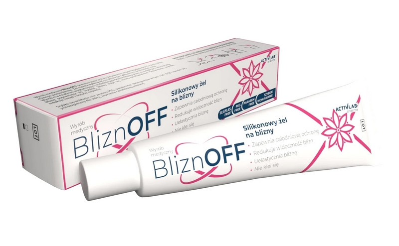 Maść żelowa BliznOFF to wyrób medyczny w postaci silikonowego żelu, przeznaczony do stosowania wspomagającego przy leczeniu blizn - powstałych po zabiegach chirurgicznych, skaleczeniach oraz w wyniku zmian potrądzikowych.