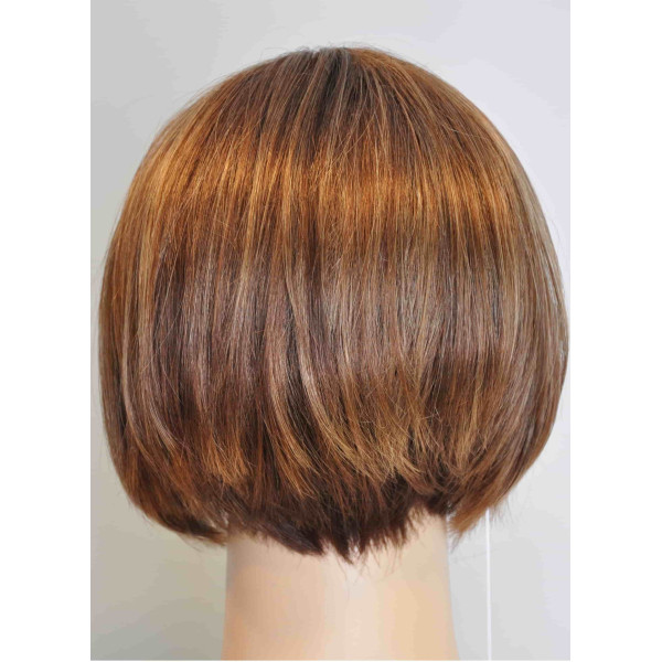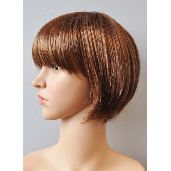 Peruka wykonana maszynowo z wysokiej jakości włosów syntetycznych. Bardzo trwała i wygodna. Włosy tkane tak, że nie widać bazy. Mikro skóra (imitacja skóry) na czubku głowy tworzy wrażenie skóry, z której wyrastają włosy.
