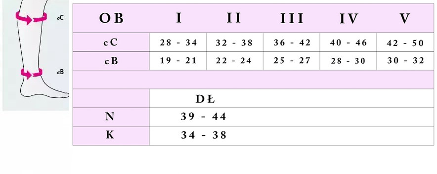 Wszystkie pomiary powinny być wykonywane na gołej nodze, w centymetrach.