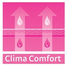 Clima Comfort zapewnia komfort podczas noszenia. Technologia oparta jest na specjalnej przędzy, która jest zawarta w różnorodnych materiałach funkcjonalnych. Włókna te szybko wchłaniają wilgoć z powierzchni skóry i odprowadzają ją na zewnątrz.