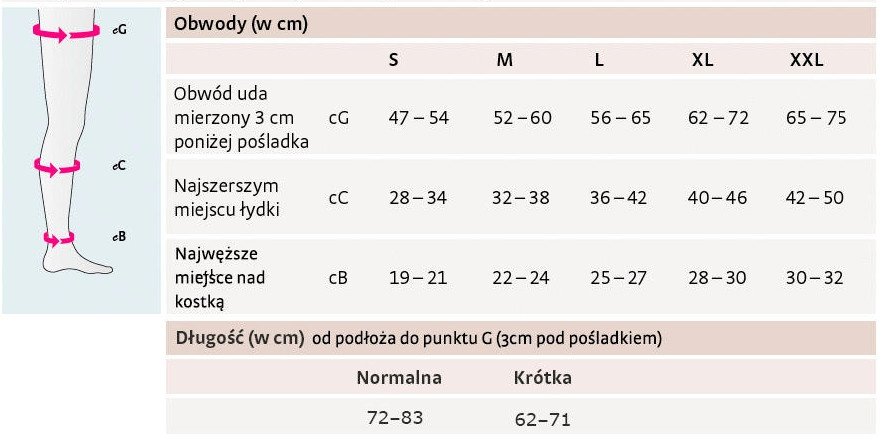 Wszystkie pomiary powinny być wykonywane na gołej nodze, w centymetrach.