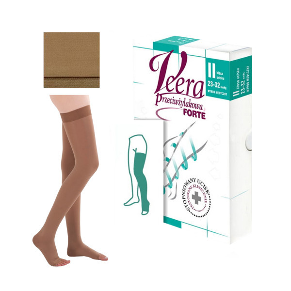 Pończochy Przeciwżylakowe Veera Forte CCL2 Karmel Otwarte palce II Klasa Ucisku