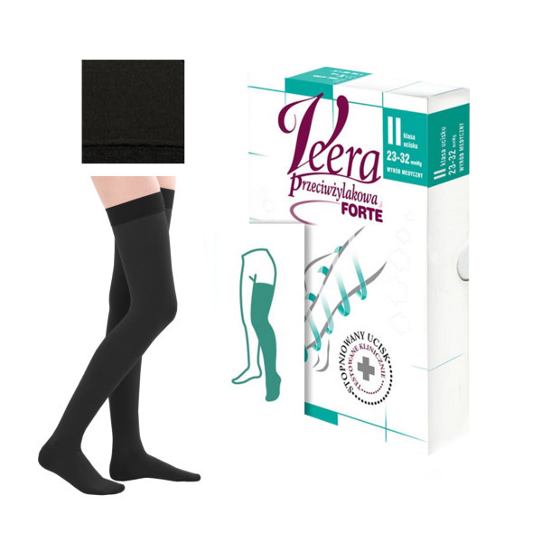 Pończochy Przeciwżylakowe Veera Forte CCL2 Czarne Zamknięte palce II Klasa Ucisku