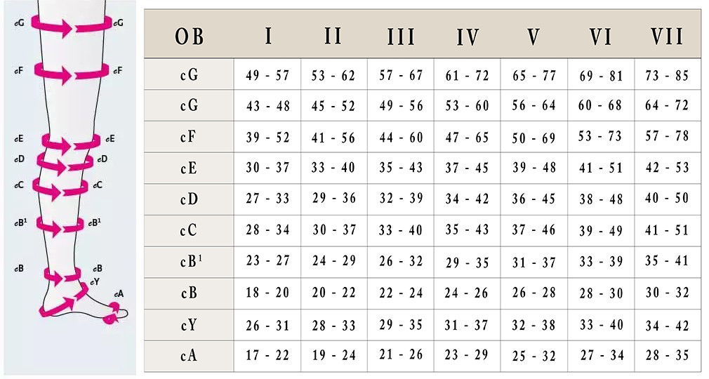 Wszystkie pomiary powinny być wykonywane na gołej nodze, w centymetrach.