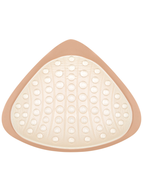 - Trójwymiarowa powierzchnia z perełkami i kanalikami powietrznymi - innowacyjne rozwiązanie, które pozwala skórze swobodnie oddychać. Struktura protezy wspiera cyrkulację powietrza i redukuje wilgoć pod biustem
