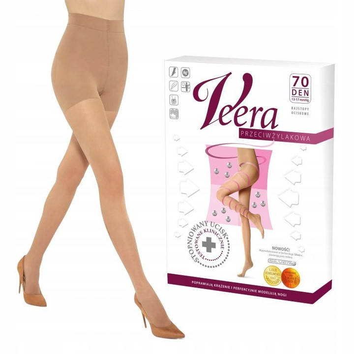 Najwyższej jakości eleganckie rajstopy Veera ze stopniowanym uciskiem. Poprawiają krążenie i perfekcyjnie modelują sylwetkę.