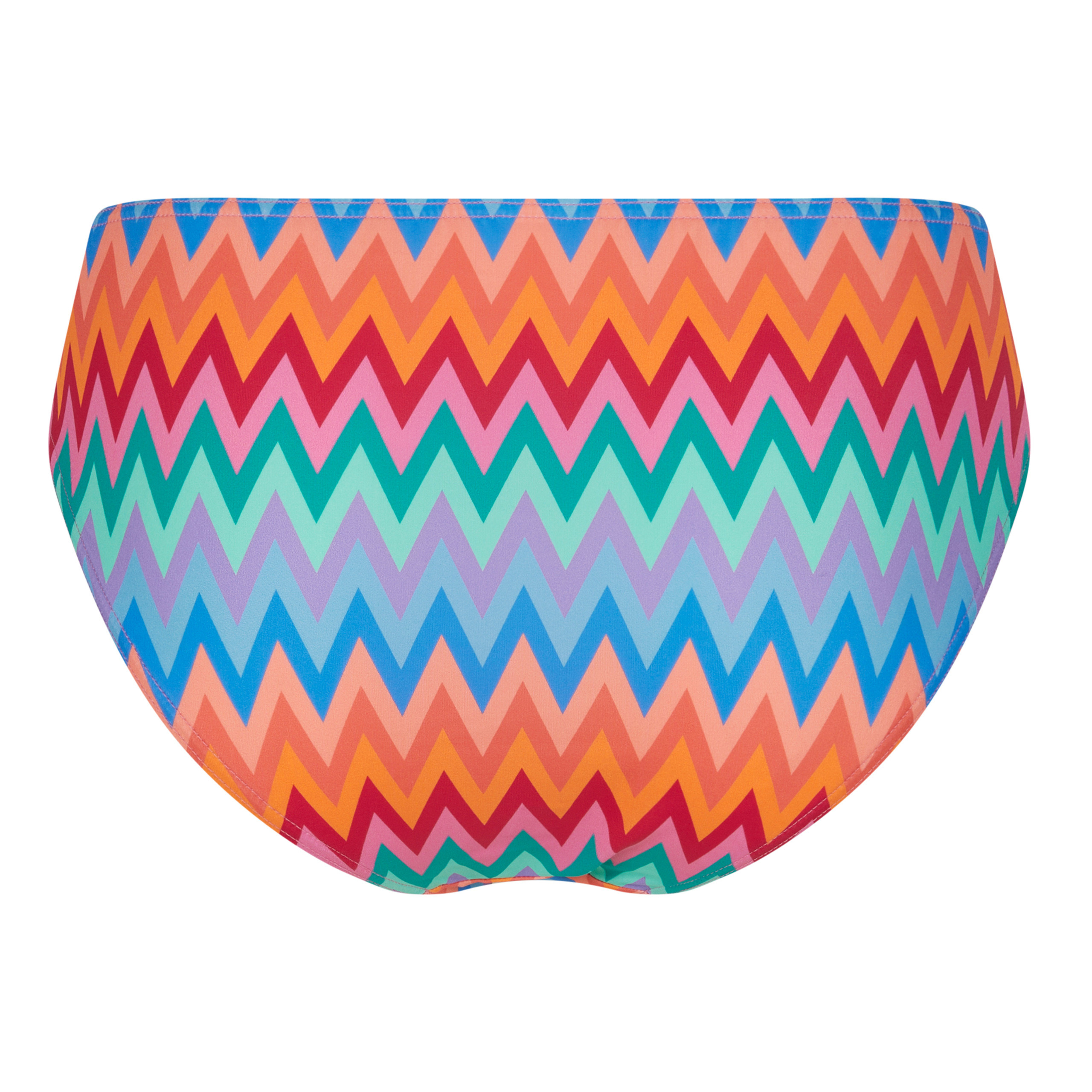 Eleganckie figi kąpielowe z intensywnym nadrukiem kolorowych zygzaków. Dół od stroju kąpielowego zapewnia doskonałą ochronę przed promieniowaniem UV 50+.