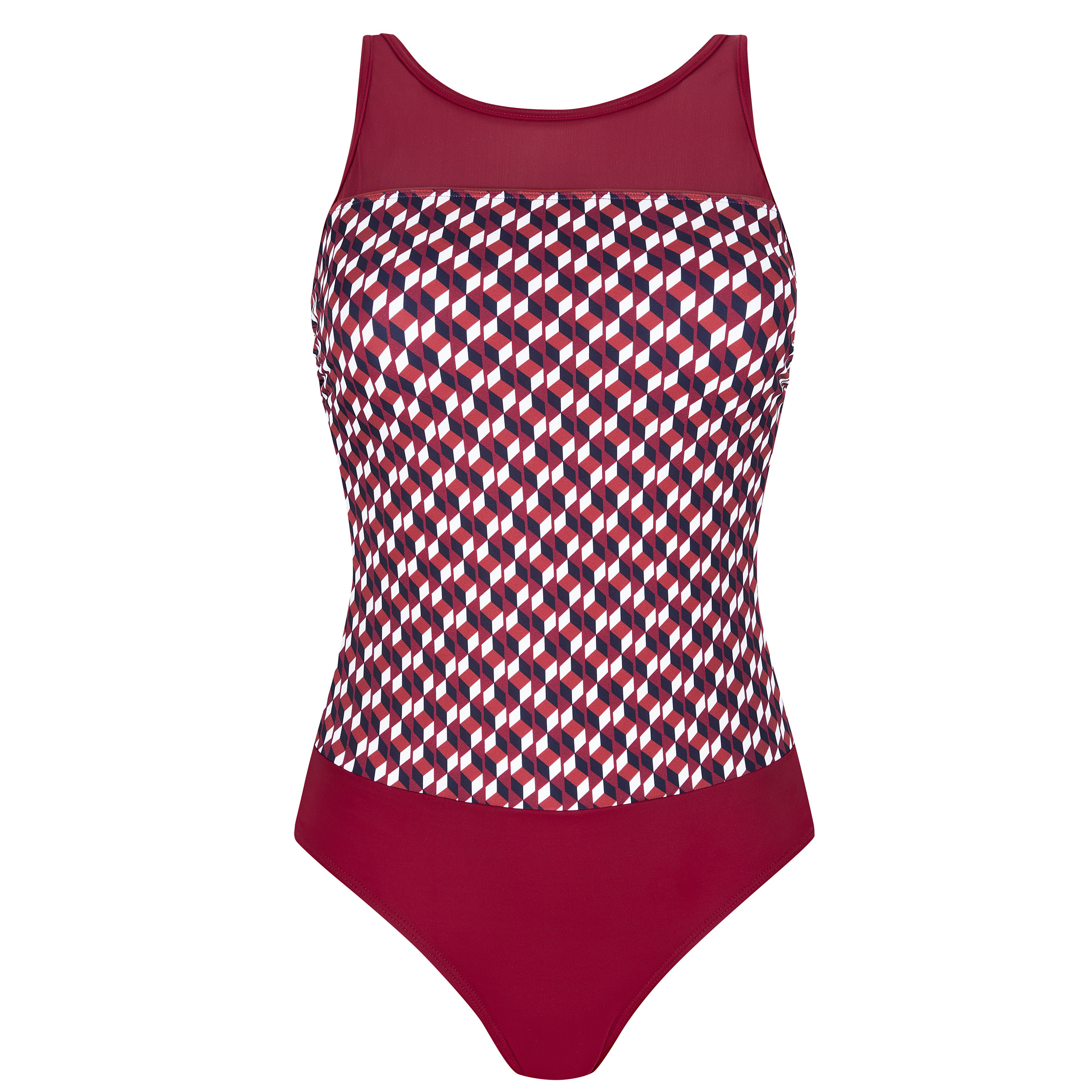 Jednoczęściowy kostium kąpielowy, styl retro w bogatych odcieniach burgundu. Strój zapewnia doskonałą ochronę wrażliwej skóry i blizn przed promieniowaniem UV 50+.