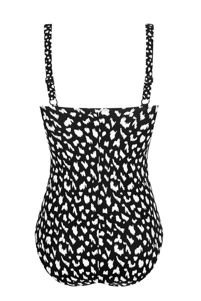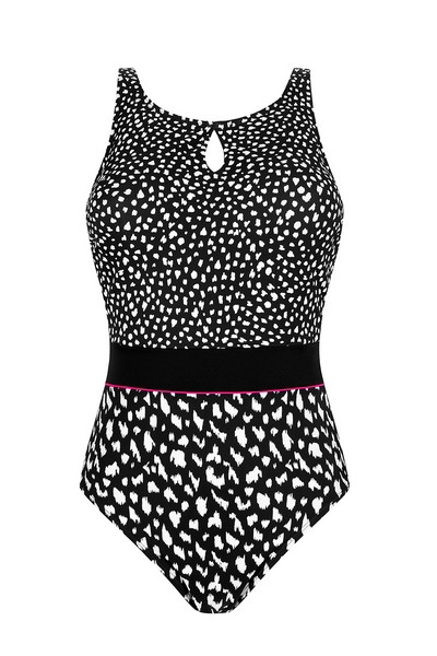 Amoena Manila OPHN to wyjątkowy, jednoczęściowy strój kąpielowy stworzony z myślą o kobietach po operacjach piersi. Wzór czarno-białej panterki w połączeniu z czarnym pasem w talii optycznie modeluje sylwetkę, nadając jej klasyczny, a zarazem nowoczesny wygląd.